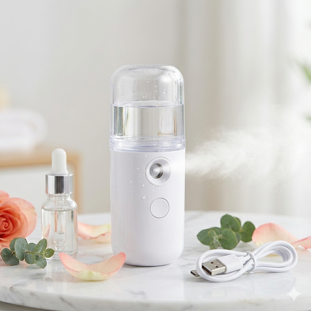 Ordinary sprays sit on top of your makeup. The Nano-Mist uses ultrasonic vibration to break water into 0.3-micron particles. These micro-droplets penetrate the basal cell layer of the skin for deep, lasting hydration without ruining your look.